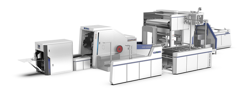 新世界A款 系列卷筒方底紙袋機,是將原色或印刷好的卷筒紙由本機一次完成上邊膠,原料成筒,切斷,底部壓痕,底部涂膠,袋底成形,出袋。是生產食品袋,手提袋的理想設備。整機由高速運動中央處理器(CPU)控制,觸摸屏顯示,伺服電機控制制袋長度,可生產多種規格的紙袋。OW-HD可加裝連線圓繩或扁繩把手功能。